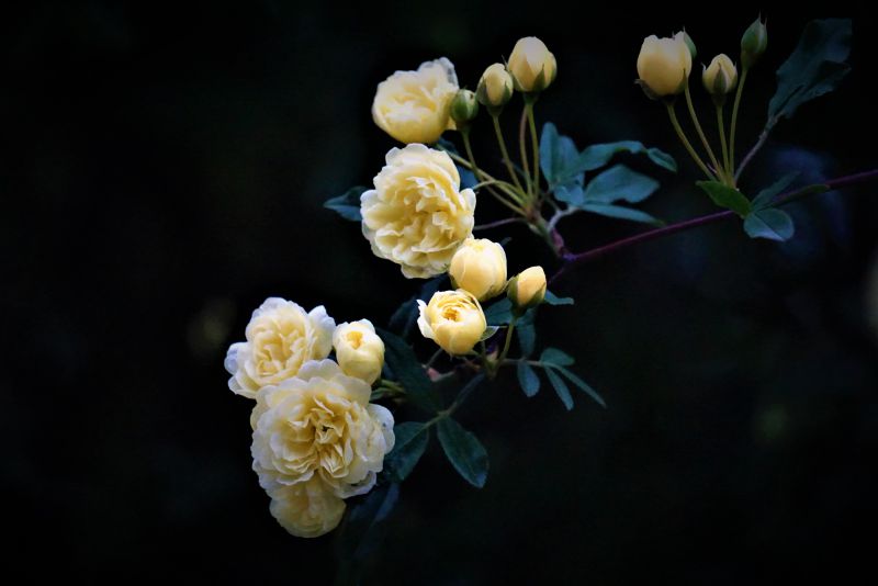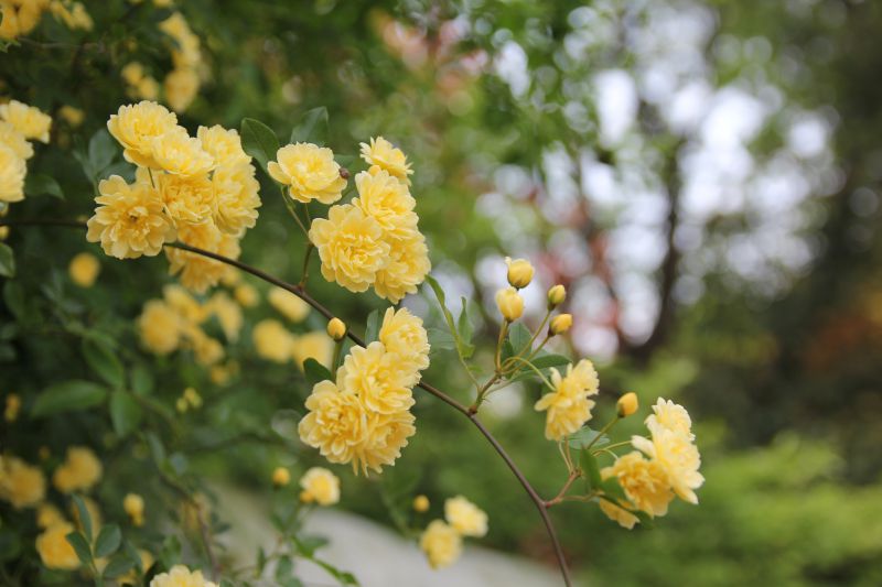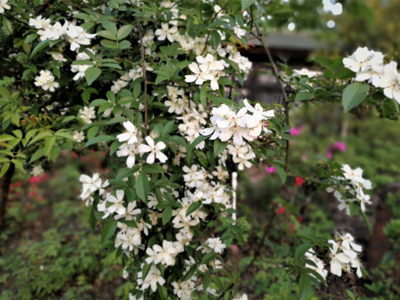 现在,多数人认为大花白木香最符合古人笔下所描写的酴醚形、色、香。大花白木香,三小叶(偶有五小叶),花单头,大朵,重瓣,花香浓郁,象牙白色,花心偶露紫色。而与酴醾有着千丝万缕联系的木香,花小如钱币,数朵簇拥成束,花色粉白或鹅黄,或单瓣或重瓣,香郁清远,花姿娴静。