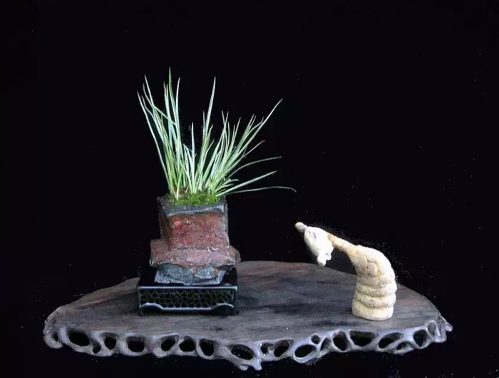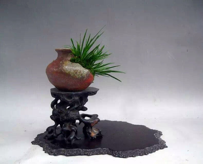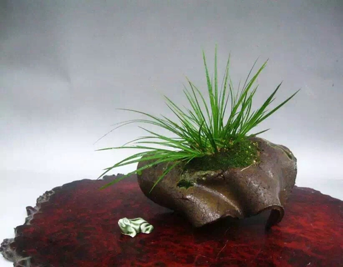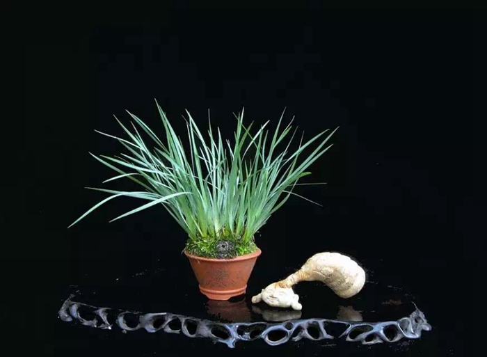 说起盆景与石菖蒲的渊源,不得不提宋文人或因仕途失意、或厌恶奢靡,而渴慕山林野趣,开始对盆景产生浓厚兴趣,“盆景”一词也首次出现。苏轼和陆游便是其中的典型代表。苏轼是个盆景迷,不但养树植草,还曾于蓬莱县丹崖山旁取弹子涡石数百枚,用以养石菖蒲。陆游也曾如此描述隐居生活的悠闲平静:“寒泉自换菖蒲水,活火闲煎橄榄茶。自是闲人足闲趣,本无心学野僧家。”此处的菖蒲即为石菖蒲,诗人亲自为蒲石盆更换新水,烹茶品茗,可谓“闲人闲趣”。现代人劳心劳力,多伏案长久,并患有职业病。而从古代文人养蒲可知,侍养花木、为石菖蒲换水、焚香、煎茶、修剪盆景等亲力亲为,其实是鼓励伏案过程中不时穿插不太消耗体力的劳作,以活动筋骨,放松心神,缓解目力,锻炼手脚的灵活性,是非常有益的养生安排。这些亲手进行的日常操持都需要人付出勤谨与耐心,也能怡养性情。