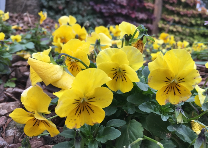5、角堇:学名Viola cornuta,堇菜科堇菜属多年生草本,常做一年生栽培。株高10-30厘米,茎较短而直立。园艺品种较多,花色丰富,花朵繁密。角堇由于开花早、花期长、色彩绚丽,抗寒性很强,是布置秋冬、春季花坛的优良材料。