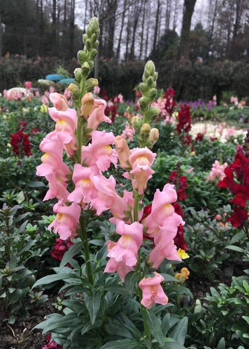 3、金鱼草:学名Antirrhinum majus L.,玄参科金鱼草属多年生草本植物。株高20-70厘米,叶片长圆状披针形。总状花序,花冠筒状唇形,基部膨大成囊状,金鱼草的花朵顶端看上去像嘴唇一样饱满,极具诱惑力!