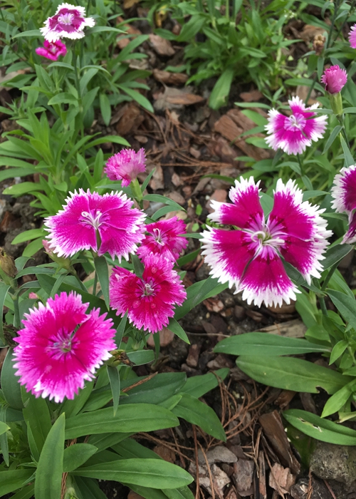 4、石竹:石竹科多年生草本,石竹花因其茎具节,膨大似竹,故名石竹。石竹花日开夜合,株型低矮,茎秆似竹,叶丛青翠,耐寒性较强,也耐干旱。石竹花的颜色很多,较鲜艳,是很好地被植物。