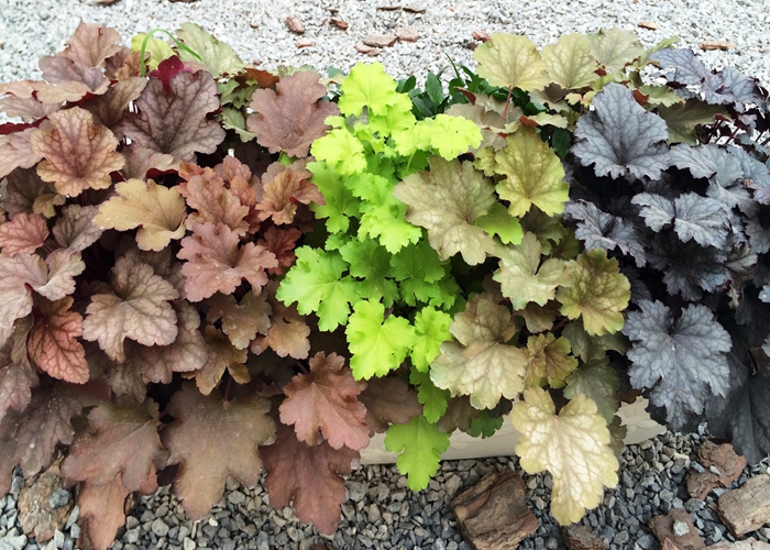 原产北美的彩叶植物矾根为虎耳草科矾根属植物,是春日花园里的“新宠”。它的叶色非常丰富,可分为绿色系、金色系、橙色系、红色系、紫色系、混色及花叶系等。无论是冷艳高雅的黑色、奢华低调的斑纹绿,还是雍容华贵的紫红色、鲜亮活泼的黄色,矾根都能带给你不一样的色彩体验,是花园中效果极佳的调色板。