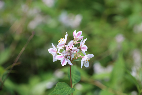 目前,上海植物园里正处盛花期的溲疏品种,有位于松柏园银杏林下的冰生溲疏(Deutzia crenata ‘Nikko’)——它在溲疏类里属小花型品种,花色洁白如玉,茂密而不喧嚣;还有位于水杉大道北入口的粉红溲疏(Deutzia cv.)——它的花色粉红,花朵比冰生溲疏稍大,颜色更加艳丽,但艳而不媚。