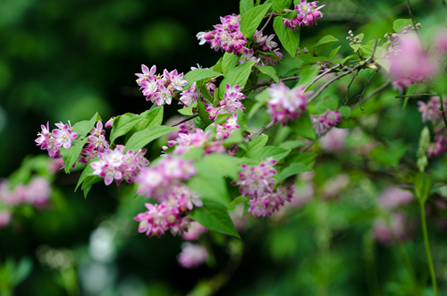 原产于北温带地区的溲疏在我国广为分布,从华北到华东地区的各大园林中都有比较广泛的应用。溲疏花期在4、5月间的春夏之交,星星点点的溲疏花朵繁茂地生长于小枝的顶端,十分热闹,远远望去片片粉白。