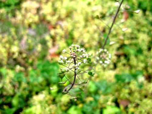 荠菜(Capsellabursa-pastoris),是十字花科荠属一年或二年生草本,高10-50厘米;茎直立,单一或从下部分枝。基生叶丛生呈莲座状,长可达12厘米,宽可达2.5厘米,大头羽状分裂,顶裂片卵形至长圆形,长0.5-3厘米,宽0.2-2厘米,侧裂片3-8对,长圆形至卵形,长0.5-1.5厘米,浅裂、或有不规则粗锯齿或近全缘,叶柄长0.5-4厘米;茎生叶窄披针形或披针形,长0.5-6.5厘米,宽0.2-1.5厘米,基部箭形,抱茎,边缘有缺刻或锯齿。总状花序顶生及腋生,果期延长达20厘米;萼片长圆形,长1.5-2毫米;花瓣4,白色,卵形,长0.2-0.3厘米,有短爪;雄蕊6枚,排列成2轮,外轮的2枚具较短的花丝,内轮的4枚具较长的花丝;花柱短,长约0.5毫米;短角果扁平,倒心状三角形,具网脉,长0.5-0.8厘米,宽0.4-0.7厘米;花果期4-6月。