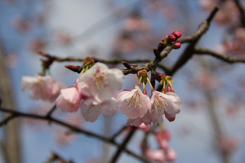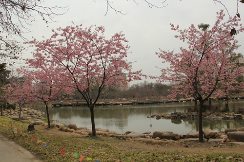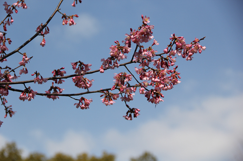 目前,上海植物园内的大寒樱(蔷薇园)、河津樱和修善寺寒樱(牡丹园河岸)、才力樱(二号门绿荫轩)等早樱花正值观赏期,请游客们抓紧时间,及时观赏。