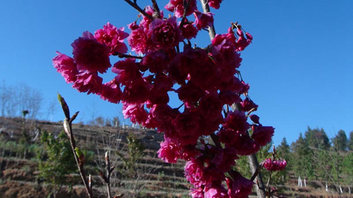 为了进一步优化园中樱花景观,园艺科与承建公司紧密配合、共同把关,淘汰了一些观赏性较差的樱花品种和衰败的樱花树,又分别从云南、浙江、江苏等地引进了一批新优特色樱花品种,如生长强健、花期较早的‘大寒樱’(Prunus×kanzakura ‘Oh-kanzakura’),可在春冬两季开花的‘冬樱’(Prunus×parvifolia cv. Parvifolia),以及我国原产的‘中国红’(Prunus campanulata)、云南樱花(Prunus cerasoides ‘rubea’),日本品种‘初美人’樱(Prunus ‘Introrsa’)、‘染井枝垂’樱(Prunus yedoensis ‘Perpendens’)、‘松前早咲’(Prunus lannesiana ‘Matsumae-hayazaki’)、‘一叶’樱(Prunus lannesiana ‘Hisakura’)等。此次,上海植物园共引进了22个樱花种(品种),共120株。其中,‘初美人’樱、‘牡丹’樱、‘松前早咲’樱等18个品种为上海首次引进。这批新品种的樱花现均配植在河岸边的樱花林带里,有效提升了蔷薇园的观赏效果。