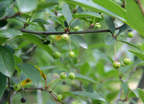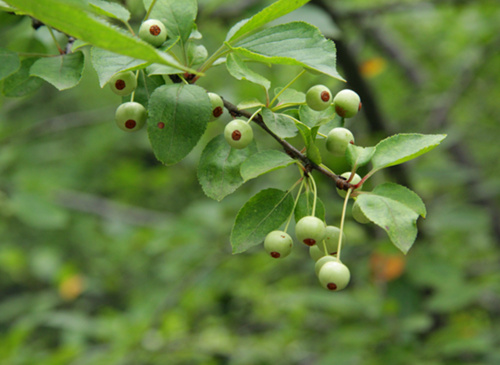 再来看看‘毛山荆子’的果,那红绿相间的小果,很萌很可爱。原生的湖北海棠的果用简单一个“绿”字就能概括,而春季花儿最为艳丽的垂丝海棠,其果实却出奇的小巧、朴素!这些果实确实离“小苹果”的感觉远了点,难怪会被归为山荆子系呢。