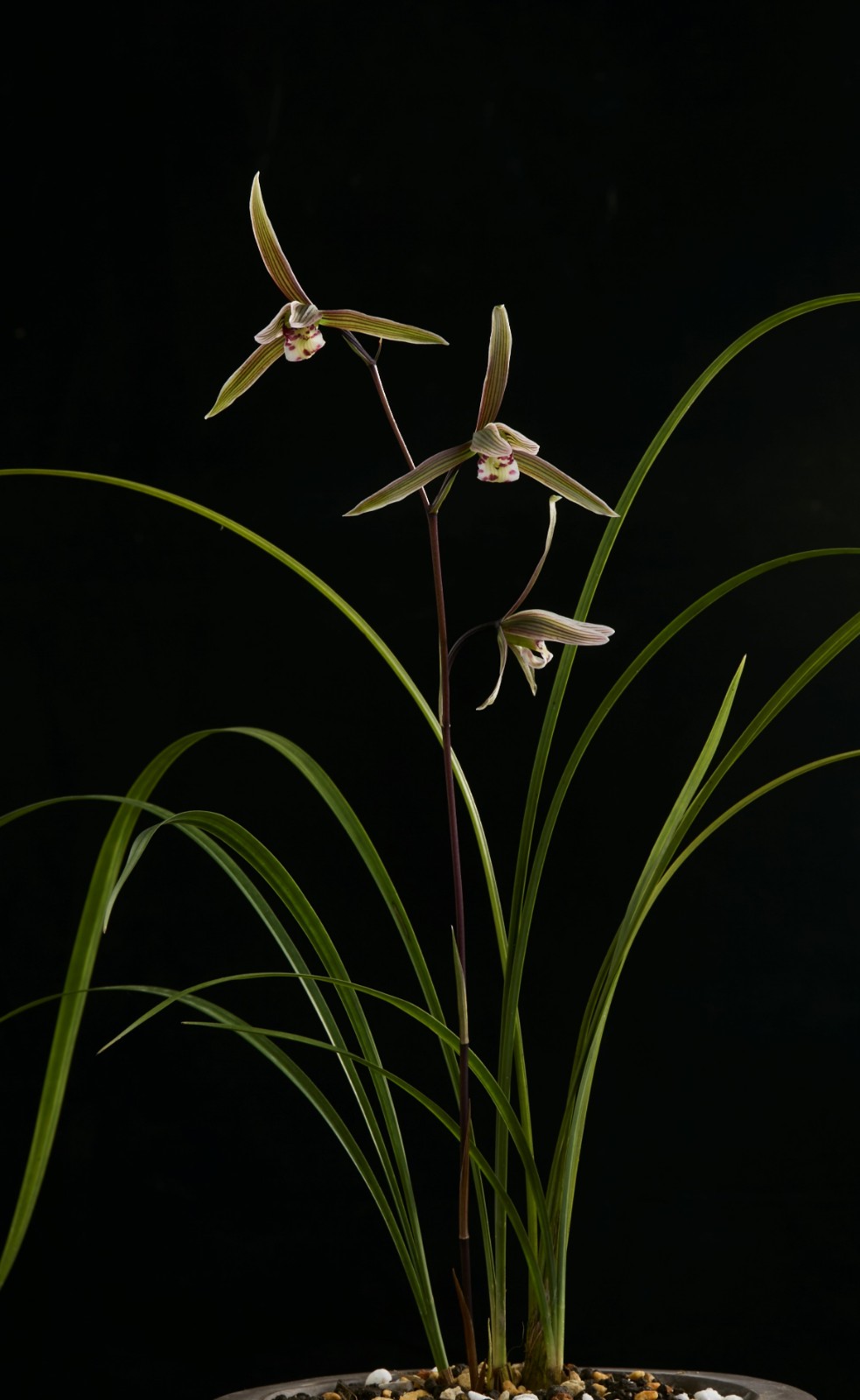 古人曾赞兰有“四清”之德:香清、色清、姿清、韵清。寒兰不仅美在于其花开于隆冬腊月,天寒香愈清;亦不仅在于其瓣形纤细,姿色愈显清寒;更在于其兰叶间透露出的一种飘洒、孤傲的气质和君子正气的人格品质。